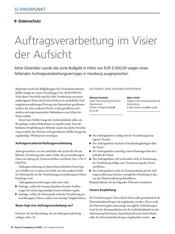 PoC 2/2019, Beitrag von Michael Switalla und Björn Veit: Auftragsverarbeitung im Visier der Aufsichthttps://www.dz-cp.de/medien/pdf/point-of-compliance/2019/poc-2-2019-beitrag-von-michael-switalla-und-bjoern-veit-auftragsverarbeitung-im-visier-der-aufsicht/viewhttps://www.dz-cp.de/@@site-logo/logo.svg